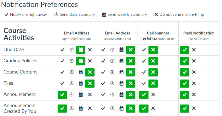 Pay particular attention to making sure you receive Announcements. All the other stuff is up to you (some of it we don’t even use in our course (but you may in other Canvas courses).