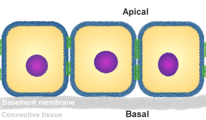 - Basal surface of each cell is anchored; apical surface of each cell is is “free”